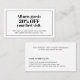 Elegant fully customizable discount card template with bold fonts, black and white colors. Perfect marketing tool for beauty related professionals, beauty salon.