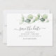 Minimalist Botanical Wedding Save the Date Announcement Card you can easily customize by clicking the "Personalize" button. Featuring Eucalyptus foliage with modern script and popular typography on white background.