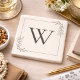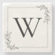 This coaster features a clean, minimalist design with a soft, neutral aesthetic. At the center is a large, elegant serif letter initial creating a refined monogram look. A thin, delicate border frames the design, adding structure without overpowering the simplicity. In two opposite corners, small botanical line illustrations—featuring simple leaves and tiny blossoms—add a gentle, organic touch. These understated floral accents soften the overall look and bring a hint of nature-inspired charm. Overall, the coaster blends modern minimalism with rustic elegance, making it perfect for a sophisticated, neutral home décor style.
