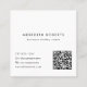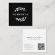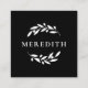 Minimalist Botanical QR Code Black and White Square Business Card Template... Modern minimalist business card with a botanical wreath of olive branches bordering your name on a chic black background. The white back of the card displays your personalized QR code and contact information in black sans serif typography. The example QR code and all text on front and back can be easily revised with your own details on the personalization template.