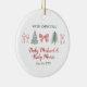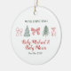 Share your joyful news in the sweetest holiday way with this minimalist Christmas ornament featuring delicate hand-drawn bows and winter trees. Designed with soft festive colors and elegant lettering, this ornament is a beautiful keepsake for announcing your pregnancy during the holiday season.