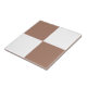 This minimalist ceramic tile features a trendy 2025 brown mocha shade and white checkered pattern.