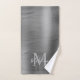 Minimalist Brushed Metallic Silver Gray Monogram Bath Towel Set
