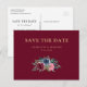 Minimalist Burgundy Navy Blue Floral Save The Date Announcement Postcard