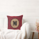 Minimalist Burlap and Red Buffalo Plaid Monogram Throw Pillow