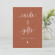 Let our collection of minimalist terracotta burnt orange script cards and gifts signs bring a touch of understated elegance and sophistication to your celebration. Easy to customize and perfect for any wedding or event. Check out the Graphic Art Design store for other products that match this design!