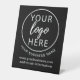 This compact custom business logo pedestal sign provides professional brand visibility in a convenient freestanding format, allowing you to upload your company logo, business name, and contact details to create an eye-catching display perfect for desks, countertops, reception areas, or small promotional spaces. Simply customize this design to create a polished directional or informational sign that enhances your professional presence at trade shows, retail locations, offices, or events. Whether you need subtle branding for your workspace, promotional signage for marketing campaigns, or informational displays for customer service areas, this versatile pedestal sign delivers maximum impact in minimal space while providing the flexibility to position your brand message exactly where it's needed most.