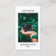 A modern and minimal aesthetic on this customizable business card template allows your name or business name to stand out along with a simple photo to tell your story. The cropped, centered photo gives a fashion editorial feel to the layout. Replace the stock photo with your own image for further customization. This double-sided card allows ample room on the backside for your contact info. Design © 1201AM