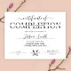 Minimalist Certificate Award in white and black, perfect for completion certificates for lash or beauty salon courses. You can also use this modern certificate of achievement design with elegant script font for any type of diploma. This simple professional course award features modern cut through letters and calligraphy style font creating a beautiful certificate of completion design.