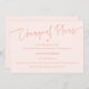 Postponing a big event like your wedding can be stressful, but you can still look stylish with this modern and minimalistic change of plans template card. It says "change of plans" in stylish script font at the top with a little heart. The background is peach.