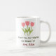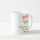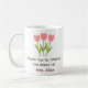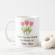 Express your gratitude with this charming floral appreciation mug. Featuring a delightful illustration of three pink tulips and the heartfelt message 'Thank You for Helping Me Grown-up,' personalized with the name 'Mrs. Alice,' this mug is a thoughtful gift for teachers, mentors, or anyone who has made a positive impact in your life. Made from durable ceramic, it’s perfect for daily use and is both microwave and dishwasher safe.