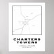 Celebrate Charters Towers with this sleek and minimalist map design featuring the city’s coordinates (-20.0743° S, 146.2616° E). This black-and-white artwork adds a contemporary touch to your decor.
