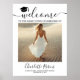 Celebrate this milestone in style with a modern welcome sign featuring your favorite photo. This minimalist black and white design with soft script and a graduation cap icon offers a clean, timeless look that pairs perfectly with any party theme. Ideal for displaying at the entrance of your celebration, it helps set the tone while honoring the graduate in a meaningful, chic way. Add your name, class year, and school details for that polished touch.