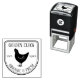 Brand your eggs with a clean, modern look! This stamp features a simple chicken illustration within a classic border. Customize it with your farm or business name and establishment year for a professional touch. High-quality self-inking stamp for clear and consistent imprints.