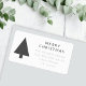 Minimalist, bold and simple christmas tree silhouette design holiday labels in a 'scandi' scandinavian design style. The modern, minimal and bold design stands out from traditional christmas designs and is the perfect choice for the festive season. Can be easily personalized with your holiday message and return address details. In striking monochrome black and white - also available in other colors. | #scandi #scandinaviandesign #hygge #minimalist #bold #modern #simple #christmastree