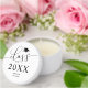 Minimal and modern graduation party favor candle featuring a script text that says "class of 20XX" with an illustration of a graduation cap. You can add the graduate's name at the bottom.