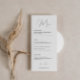 Minimalist Classic Script Font Wedding Menu Card