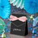 Simple Clean Minimalist Girly Black Monogram Name Signature Script Custom Personalized Favor Box. This design featuring your first name in a pretty hand lettered style swash tail font signature typography (or calligraphy) in white on black color background. These stylish girly feminine gift boxes great for handing out, gifts, guest gifts and treats during an upcoming birthday party, BBQ, baby shower, wedding reception, bachelorette party, sweet 16 birthday, bridal shower, anniversary and more.