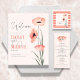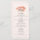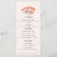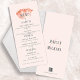 These simple 4” x 9” wedding menus feature a single coral watercolor poppy The menu includes placeholders for two appetizers, two entrees and two desserts. Add the couple’s names along with your wedding website to create your own QR code on the back.
