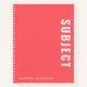 Minimalist Coral School Subject Student Name Notebook