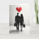 This design shows a couple in dark work clothes walking away from you down a bright hallway with a light tiled floor. The man wears a dark suit and carries a briefcase, and the woman wears a dark dress and holds a handbag. Their hands are gently held together, which makes the scene feel close and steady, like they’re facing life side by side. Above them floats a single red heart, the only strong color in the whole picture, and it draws your eye right away ❤️. The background is simple and quiet, with soft light and faint shadows that make the moment feel calm and private. There’s no printed message on the front, so the image does the talking and leaves room for your own words. It’s meaningful to give because it says love can stay present even on busy, ordinary days 🥰. Hope it helps you share Valentine’s Day sentiments with someone you care about.