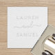This elegant minimalist wedding monogram embosser features the couple's first names in clean block lettering with a graceful flowing script "and" joining them as the centerpiece. Personalize with the bride and groom's first names for a timeless typographic monogram keepsake. A beautiful engagement or bridal shower gift perfect for sealing wedding thank you cards, invitations, and favors.