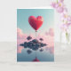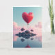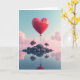 This design shows a magenta heart-shaped balloon floating in a soft sky, and its shiny surface is marked with thin, dark cracks like a web. The heart is tied with a few fine strings that lead down to a small island made of smooth, charcoal-gray stones. On the island, two tiny trees stand close together with small blossoms, like they’re keeping each other company. Everything rests above very still water that reflects the heart, the island, and the sky almost like a mirror. The sky fades from light blue into blush pink, with pale, fluffy clouds drifting across. There isn’t any text on the front, so the picture does all the talking and leaves room for your own words inside. It feels meaningful because it shows love that can be tender and imperfect, yet still worth holding onto 🥰❤️. Hope it helps you share your Valentine’s Day sentiments.