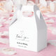 The romantic minimalist design features lovely and elegant typography on a white background with a clean and simple look. Personalize the favor box with your name and the date.