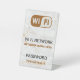 Enhance your business or event with our customizable White Stone Texture Color WiFi Network Password Pedestal Sign. This 4" x 6" sign, featuring a 2" pedestal base, is perfect for counters, desks, and display tables. Made from durable 1/16" white plastic polystyrene, it boasts a high-quality, full-color, digital print that ensures your personalized message stands out. Available in four sizes, this customizable sign is an elegant and practical addition to any space.