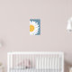 A modern abstract wall art piece featuring a stylized daisy with a bold yellow center and clean white petals against a muted blue background. Its minimalist design and fresh color palette make it a perfect accent for contemporary interiors, adding a touch of nature-inspired elegance to any space.