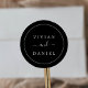 These minimalist dark black wedding envelope seals are perfect for a simple wedding. The modern romantic design features classic black and white typography paired with a rustic yet elegant calligraphy with vintage hand lettered style. Customizable in any color. Keep the design simple and elegant, as is, or personalize it by adding your own graphics and artwork. Personalize the label with the names of the bride and groom.