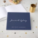 Minimalist Dark Navy Blue Script Wedding Custom Guest Book