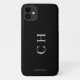 Personizled name and initials design on black background iphone case, perfect for birthdays or any special occasion. This custom case allows you to add a name and initials, making it a unique and personalized gift. Sleek typography, it combines modern style with functionality. Treat yourself or surprise someone with this elegant and thoughtfully designed accessory.