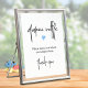 A minimalist sign with a tiny blue heart motif and an informal modern font for a modern baby boy shower. Matching raffle tickets to send out to guests are also available in this collection.