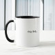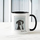 Add your photo and caption with the pup's name or custom text. Framed by a rubber stamp look, this coordinates with the charming "dog dad" minimalist typewriter text on the other side of the mug. Sure to put a smile on dad's face with his morning coffee or tea. Distressed typewriter text in a small size that says "dog dad" with a tiny paw print. All text can be customized . Classic black and white with lots of space. A great gift for a dog dad who loves his pup and elegant retro minimalist style.