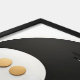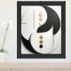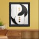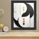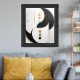 This artwork is a minimalist interpretation of the Yin and Yang symbol with a modern twist. The traditional black and white forms are present, but the piece includes additional geometric elements and a series of circles in a gradient from beige to black, creating a sense of progression or transition. The clean lines and unadorned composition reflect a contemporary aesthetic that values simplicity and balance.