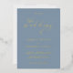 Minimalist Dusty Blue Gold Calligraphy Wedding Foil Invitation