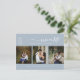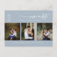 This save the date postcard features an elegant modern minimalist style of a three (tri) photo collage with a modern calligraphy of the wording "Save the Date" and elegant Serif fonts for a clean minimalist and modern look on a dusty blue background, which is a beautiful way to inform about your upcoming wedding. Announce to your family and friends you are getting married with this save the date postcard and add a personal touch with beautiful pictures of you and your soon-to-be better half. The simplicity of this design adds a touch of elegance to your wedding. It works well with many wedding themes and definitely a great addition to your wedding. Just customize the names and wording in a few easy steps and personalize the postcard with your photo of the happy couple and replace the QR Code with yours.
