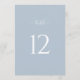 A modern minimalist wedding table number sign in a soft dusty blue color palette.