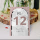 Theme Parties’ dusty rose arched photo wedding table number design features your favorite engagement photo as a black-and-white backdrop for modern geometric style. 🖤 The design is repeated on the reverse for easy viewing from any angle. ✨ Hand-lettered script pairs beautifully with clean block text in this minimalist table number design, perfect for romantic or casual weddings. 💍 #DustyRose #ModernTableNumbers #MinimalistWedding #ceb1ae
