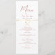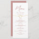 This minimalist wedding menu features modern dusty rose calligraphy paired with elegant sans serif text and a romantic gold rope heart motif. Designed in a sleek vertical layout, it includes a full-course breakdown from starters to dessert, all customizable to reflect your special dinner menu. Perfect for modern, elegant, or romantic wedding receptions, this design complements sophisticated table settings and matches other rose gold wedding stationery items.