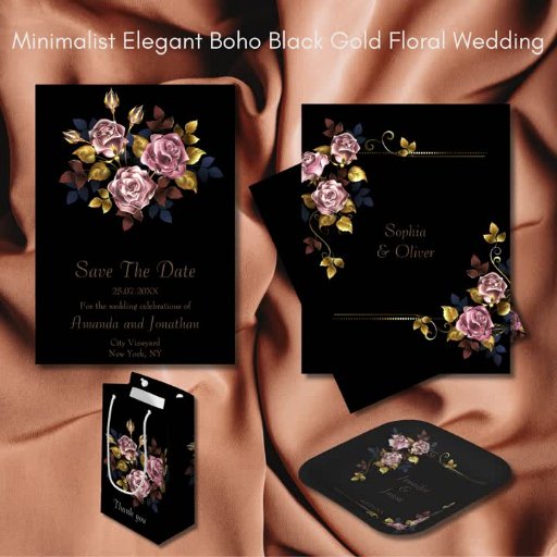 Minimalist Elegant Boho Black Gold Floral WeddingDesigned by Reviva Sisters