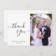 Thank your guests with this minimalist, elegant thank you card, featuring stylish black calligraphy script on a crisp white background. The front showcases your favourite wedding photo, while a personalized message is displayed on the back. This sleek and timeless design is perfect for couples seeking a modern yet classic way to express their gratitude.