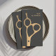 Cool chic business card template with unique scissor pattern. Elegant and minimalist design. Perfect for beauty salon, hair stylist, hairdresser.