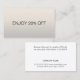Minimal fully customizable discount card with faux silver background and bold fonts.