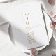 Embrace understated elegance with our modern and minimalistic white wedding seating chart. Featuring sleek design, it includes table numbers, a guest list, and a romantic gold rope heart motif, perfect for a touch of sophistication on your special day.