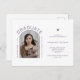 Simple purple and white typography high school senior class college university graduation party invitation postcard with a trendy arch shape graduate photo and modern look. +++++++++++++ Easy to personalize with your picture and details!