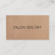 Minimal fully customizable discount card with printed kraft paper background and bold fonts.