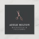 Elegant customizable business card template with rose gold scissors icon. Minimal chic design, perfect for hair salon, hairdresser, hair stylist.