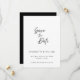 A minimalist script wedding save the date card. This save the date card features an elegant script text with a minimal black and white theme. Customize the text with all the details for your special day.